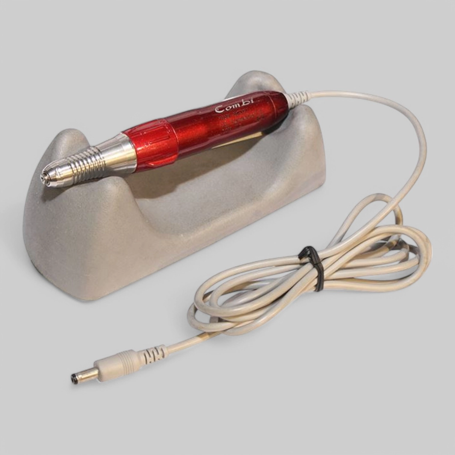 Вес же этой «малютки» беспрецедентно минимален — это 121 г. Но при всей этой миниатюрности она имеет максимальную скорость в 20000 об/мин, крутящий момент в 1,3 Нсм и мощность 24 Вт. Благодаря всем этим качествам она с легкостью справляется с любой процедурой, необходимой мастеру ногтевого сервиса. К тому же, установленные в ней самые современные комплектующие предусматривают использование ручки как минимум четыре часа без перерыва. А когда возникнет такая необходимость, то ее можно положить на специальную подставку, идущую в комплекте.