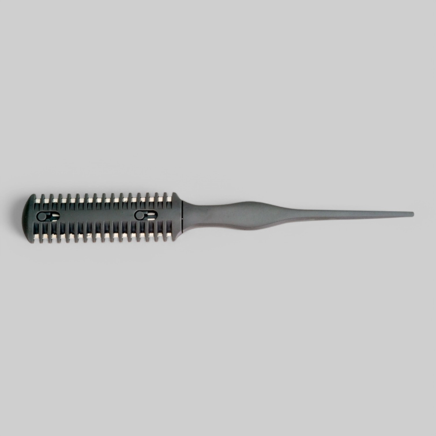 Бритва для филировки стрижки под два лезвия. Двусторонняя, требует вставки в корпус двух классических лезвий (лезвия в комплект не входят). Изготовлена из прочного пластика. Служит профессиональным инструментом мастера парикмахера. Предназначена для выравнивания объема локонов прически.