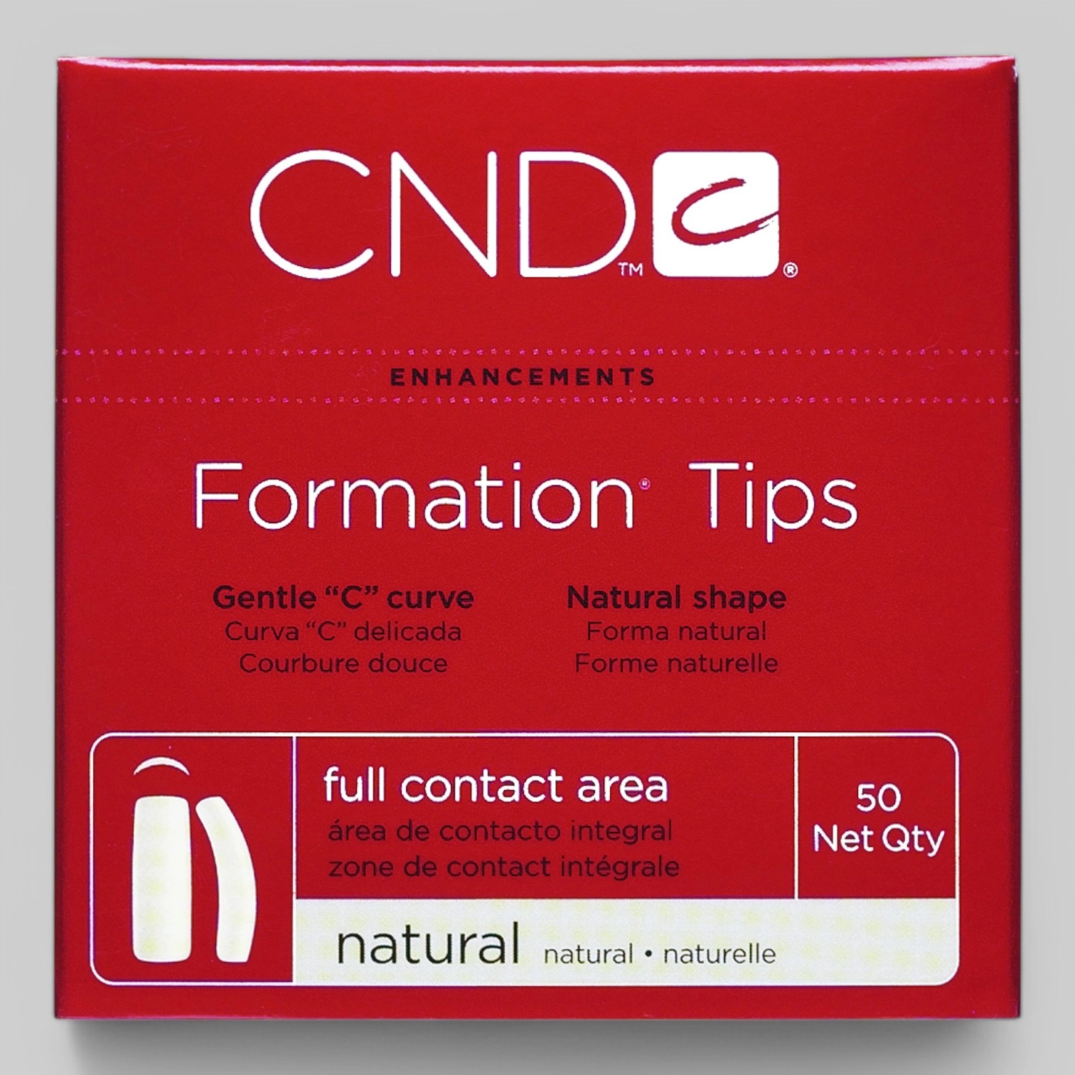CND Formation Tips Natural - натуральные, наиболее универсальные профессиональные типсы, позволяющие работать практически с любым типом ногтей, включая наиболее проблемные. Типсы выполнены из первородного ABS пластика. Позволяют придать натуральному ногтю желаемую длину, восстанавливают форму ногтей с нарушенной структурой, обладают повышенной прочностью и пластичностью.