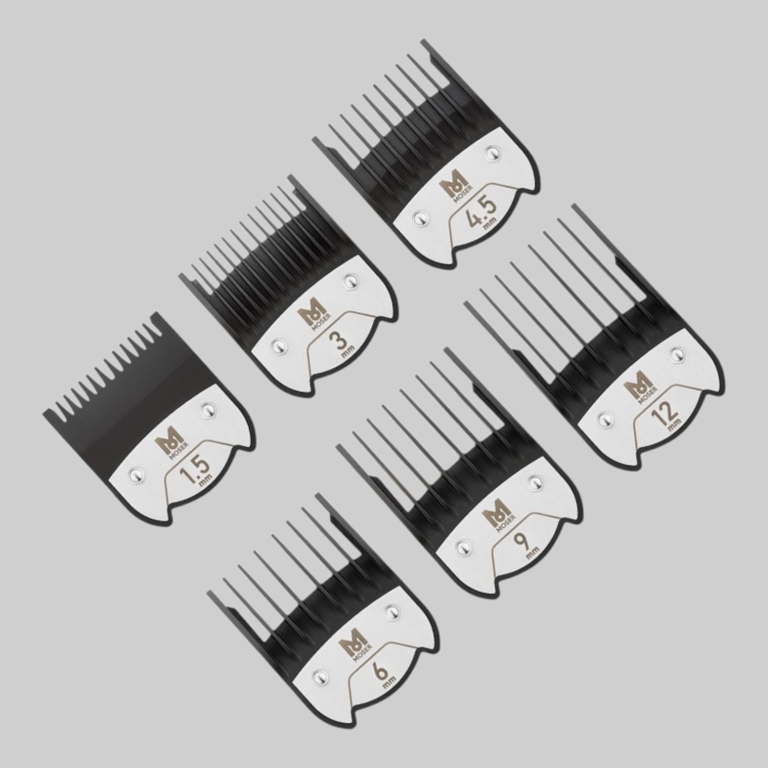 Набор из шести магнитных премиум насадок 1,5, 3, 4,5, 6, 9, 12мм в кейсе к машинкам 1854, 1870, 1871, 1872, 1874, 1876, 1877, 1884, 1885, 1886, 1887, 1888, 4212