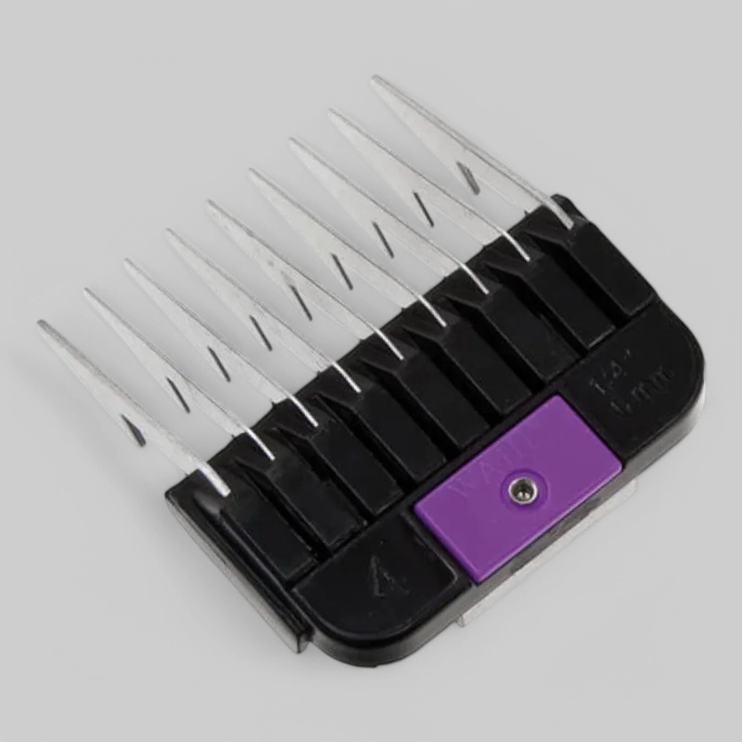 Насадка Wahl #2 1247-7810 с тонкими зубчиками сделана из нержавеющей стали для машинок с ножевым блоком типа А5. Цветная маркировка насадок помогает быстрее выбрать нужный размер. Гребень надежно крепится на ноже и не слетает во время стрижки.