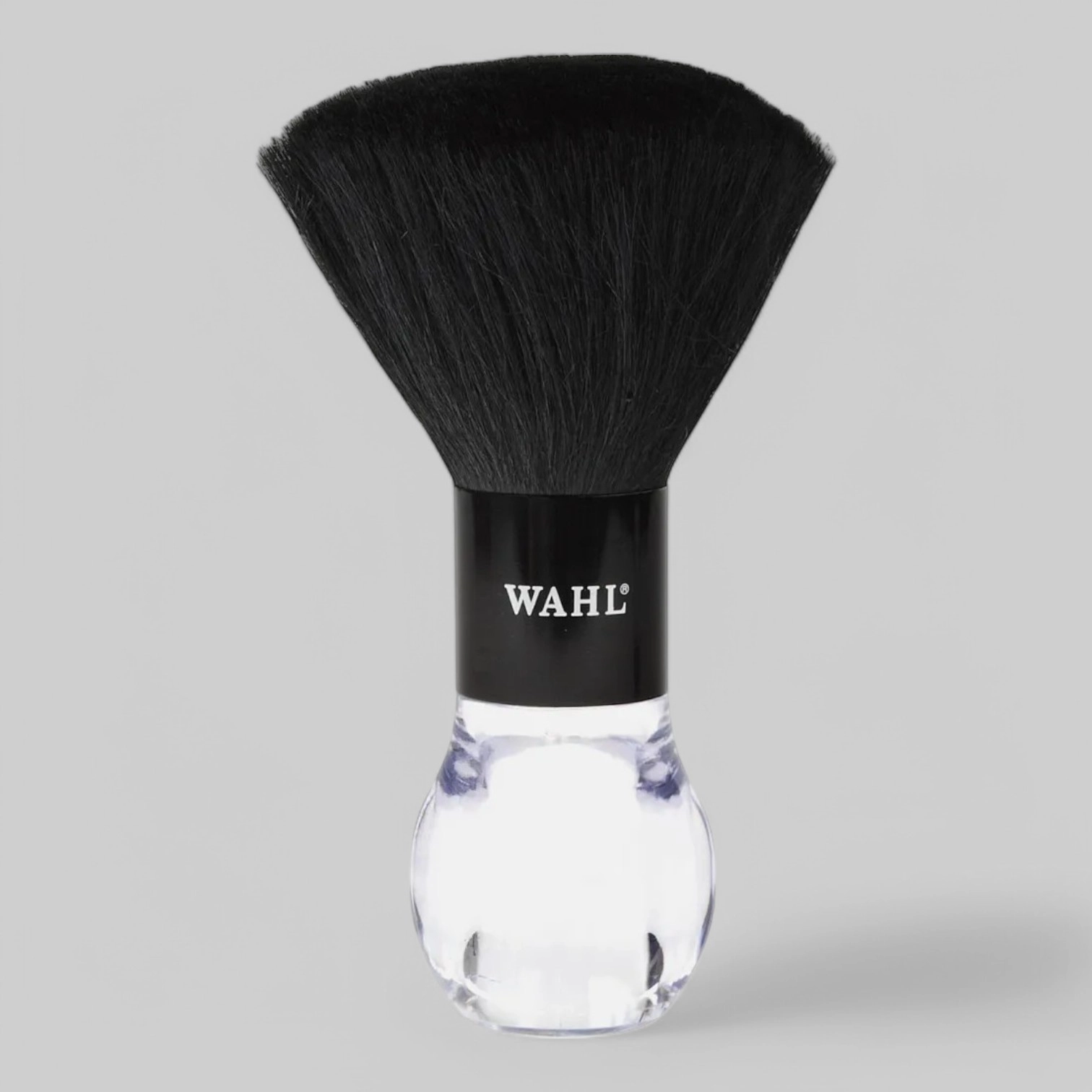 ПАРИКМАХЕРСКАЯ ЩЕТКА ДЛЯ ОЧИСТКИ ВОЛОС С ШЕИ "WAHL", ПРОЗРАЧНАЯ РУЧКА С ЧЕРНЫМ ОБОДКОМ