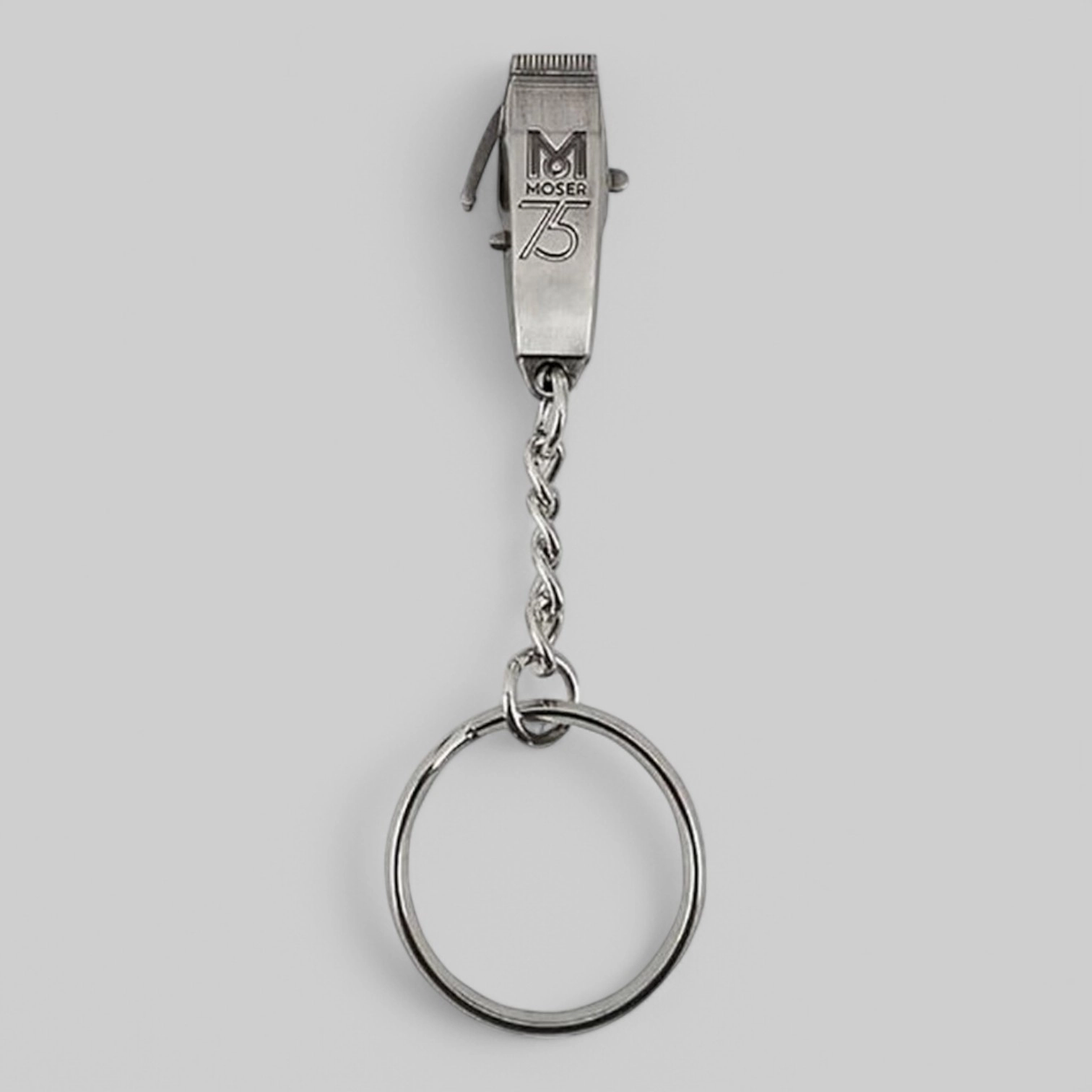 Брелок для ключей Moser – подарочный аксессуар, приуроченный к 75-летию бренда Moser. Металлический брелок с кольцом и подвеской в виде машинки для стрижки станет стильной частью образа мастера-парикмахера.