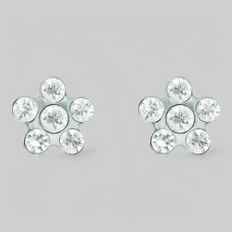 Серьги "SENSITIVE",в виде цвета из шести камней,цвет"ХРУСТАЛЬ" ,без позолоты,2 шт
