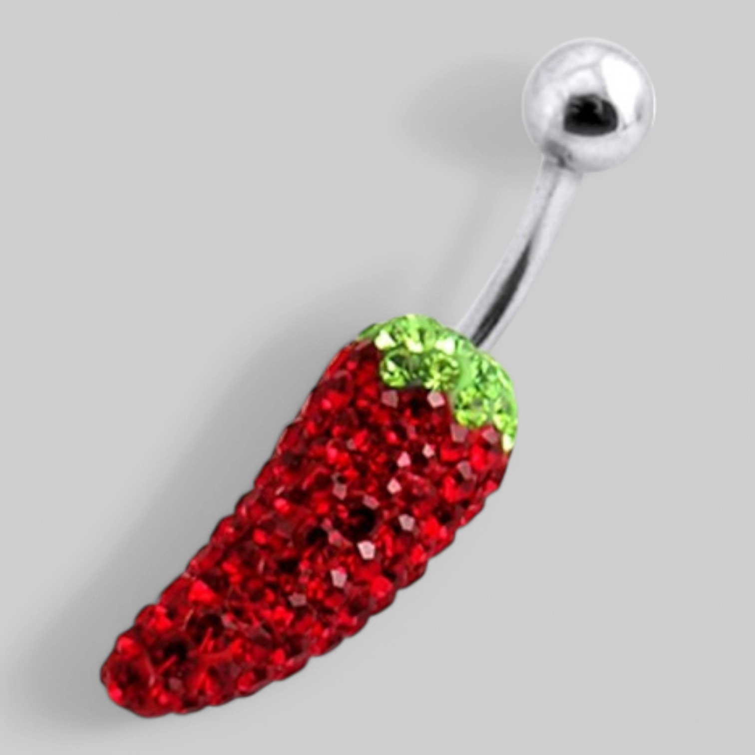 Серьга для пупка в форме перчика усыпанного стразами. Цвет - комбинированый.