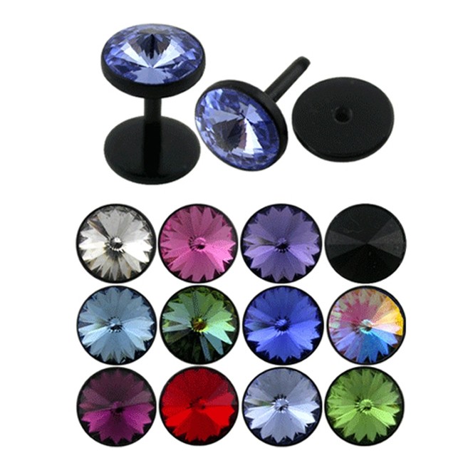 Серьга тунельная "обманка" диск с камнем в завальцовке. Цвет - фиолетовый.