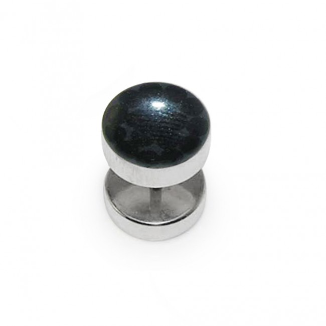 Серьга тунельная "обманка" диск с широкими бортами с эмалевым покрытием. Цвет - черный.