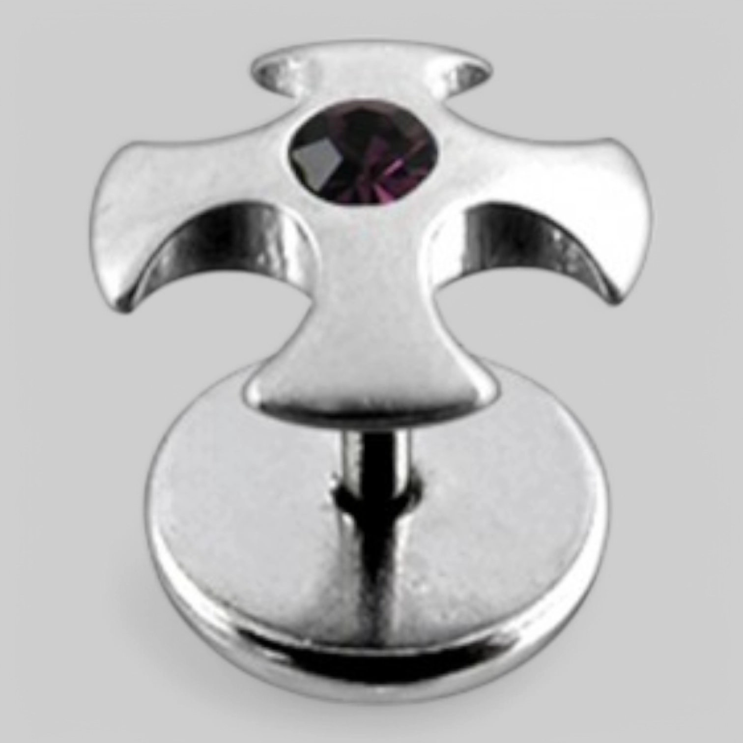 Серьга в форме "ирландского креста" с камнем в центре. Цвет - фиолетовый.
