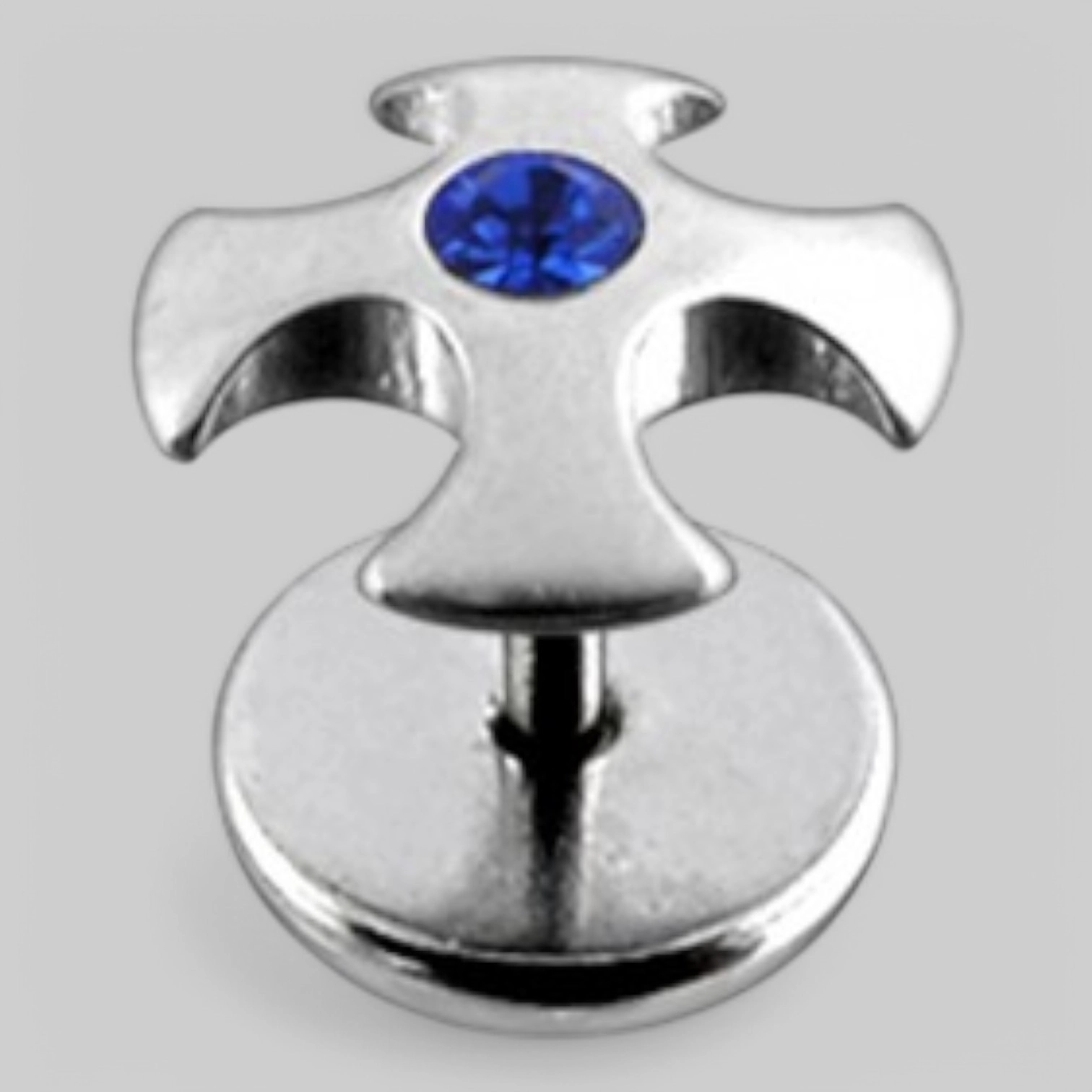 Серьга в форме "ирландского креста" с камнем в центре. Цвет - ярко-синий.