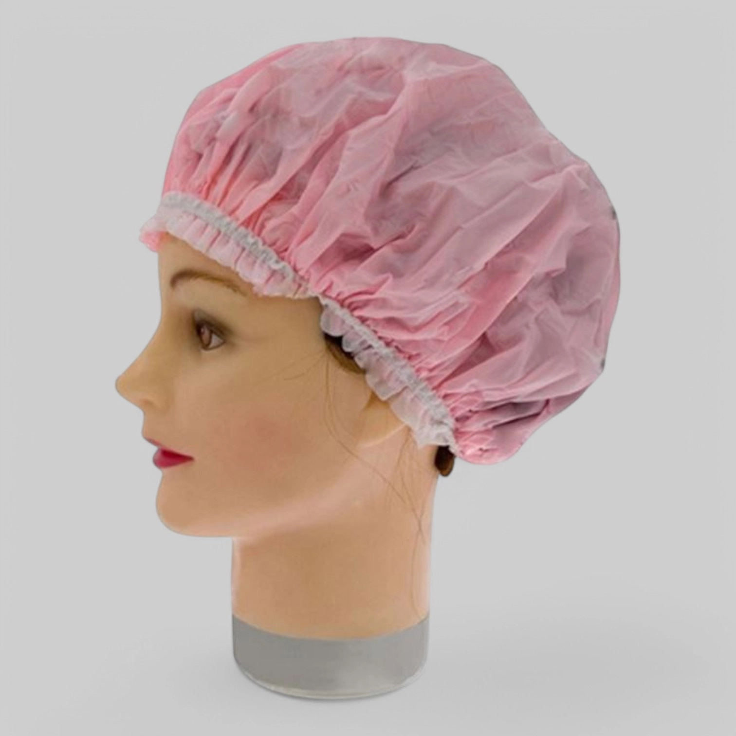 Шапочка пластиковая для душа с кружевом, розовая.288