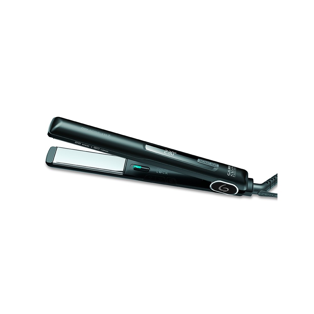 G-STYLE DIGITAL IHT OXY-ACTIVE — это профессиональный выпрямитель с плавающими пластинами классического размера 28 х 90 мм с хром-титановым покрытием Silk-Chrome Titanium, обеспечивающим превосходное скольжение даже по химически обработанным волосам. Благодаря технологий IHT прибор нагревается до максимальной температуры 230 °C всего за 14,3 секунды, что позволяет существенно сэкономить время на укладку и минимизировать тепловой стресс, так как температура остается постоянной. Технологии Oxy-Active и Ion Plus под действием активного кислорода и отрицательных ионов помогают в борьбе с наэлектризованностью, дарят превосходный блеск волосам. Для удобства использования есть цифровой дисплей для контроля температуры, функция автоотключения через 60 минут бездействия и вращающийся на 360° 3 метровый шнур с петлей для подвешивания Благодаря регулировке температуры от 150 до 230 °C (с шагом 10 ° C ) его можно использовать для любого типа волос. Вес прибора всего 246 грамм.ТЕХНОЛОГИИ:ТЕХНОЛОГИЯ OXY-ACTIVEМощный антибактериальный и антистатический эффект, защита окрашенных волос, оздоровление от корней до кончиков.Благодаря выделению активного кислорода с антибактериальными свойствами и отрицательными ионами, технология способствует блеску, эластичности и глубокому очищению кожи головы. Она специально разработана для защиты окрашенных волос, нейтрализует негативное воздействие химических веществ, входящих в состав средств для окрашивания, запечатывает кутикулу волоса и защищает волосы и кожу головы от повреждений, вызванных свободными радикалами и воздействием внешних факторов.ТЕХНОЛОГИЯ ION PLUS: здоровые волосы без статикиСистема ION PLUS выгодно отличается от других ионных технологий тем, что производит до 80 % больше ионов. Она одновременно улучшает качество и внешний вид волос. Стабильно высокое излучение природных отрицательных ионов устраняет эффект «пушистости», делает пряди гладкими, послушными и блестящими. Помимо дисциплины пушащихся волос, технология работает на восстановление структуры и стимулирует процессы регенерации. Система активируется автоматически при включении выпрямителя. Это понятно по характерному звуку, который сопровождает выработку большого количества ионов.ТЕХНОЛОГИЯ IHTИнновационная технология мгновенного нагрева IHT (Instant heat technology) произвела революцию в мире стайлинга, благодаря современному запатентованному секретному нагревательному элементу, который достигает рабочей температуры за 14,3 секунды, сохраняя ее постоянной и равномерной до тех пор, пока устройство включено. Тепло распределяется равномерно по всей поверхности нагревательных пластин. В результате ваши волосы больше не испытывают термический стресс, вызванный перепадами температуры. Прядь за прядью результат всегда будет великолепным.ТЕХНОЛОГИЯ SILK-CHROME TITANIUMХром-титановое покрытие Silk-Chrome Titanium позволяет чрезвычайно легко скользить по волосам, гарантируя превосходную производительность и эффективность, особенно на химически обработанных волосах. Такие пластины нагреваются быстрее, распределяют более высокие температуры равномернее, выделяют больше инфракрасного тепла и отрицательных ионов, чем керамические, что обеспечивает превосходные результаты. Этот материал намного легче и он чрезвычайно устойчив, что делает пластины из него прочными даже при воздействи