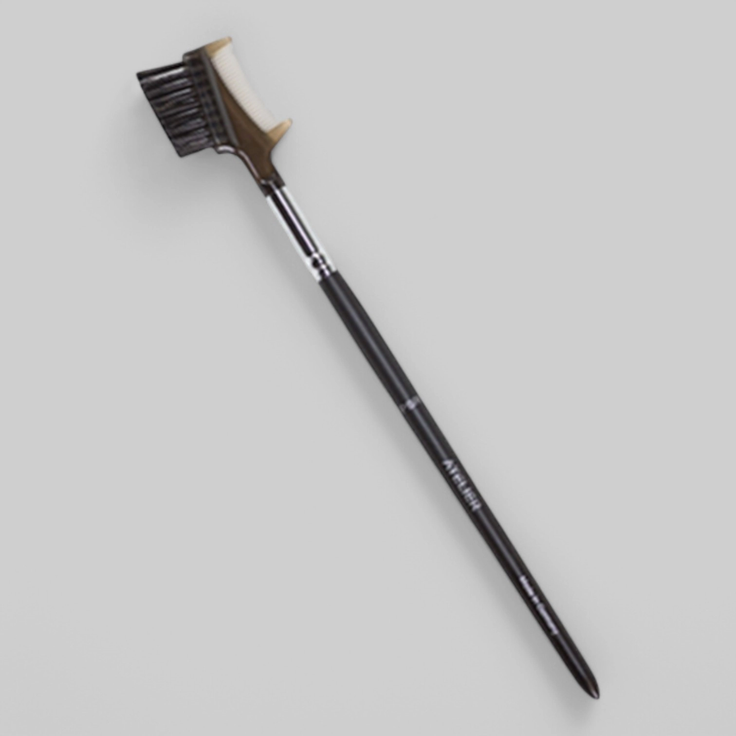 Расчёска "ATELIER №BR" двухсторонняя для ресниц и бровей, пластиковые зубцы плюс двухрядная щёточка.