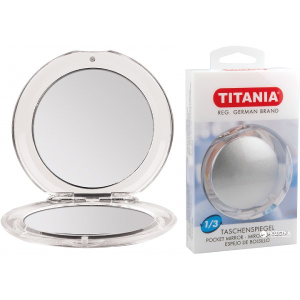 ОписаниеОригинальное карманное косметическое двухстороннее зеркало Titania, D - 6 см Одна сторона стандартная, вторая —с 3- х кратным увеличением.