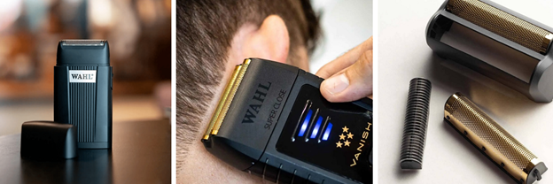 Wahl Vanish 08173-716 — долгожданная новинка 2023 года! Шейвер является частью серии 5 STAR и предназначен для профессионального использования: для сухого бритья, обработки кожи головы, шеи, а также пространства за ушами после использования машинок. Vanish обладает комбинированным типом питания: Li-ion (литий-ионный) аккумулятор со временем работы до 180 минут и от сети. Данная модель оснащена двумя бритвенными головками для гладкого и точного среза, сетка прибора покрыта сусальным золотом, что предполагает ее безопасное использования для кожи склонной к аллергии и раздражениям. Бритвенная головка с сеткой легко снимаются, позволяя быстро почистить шейвер. Дизайн корпуса черный с тремя уровнями индикации заряда: полное отображение уровней — при 100% зарядке, отображение двух уровней — при зарядке более 60%, отображение одного отделения — при зарядке 30%.
